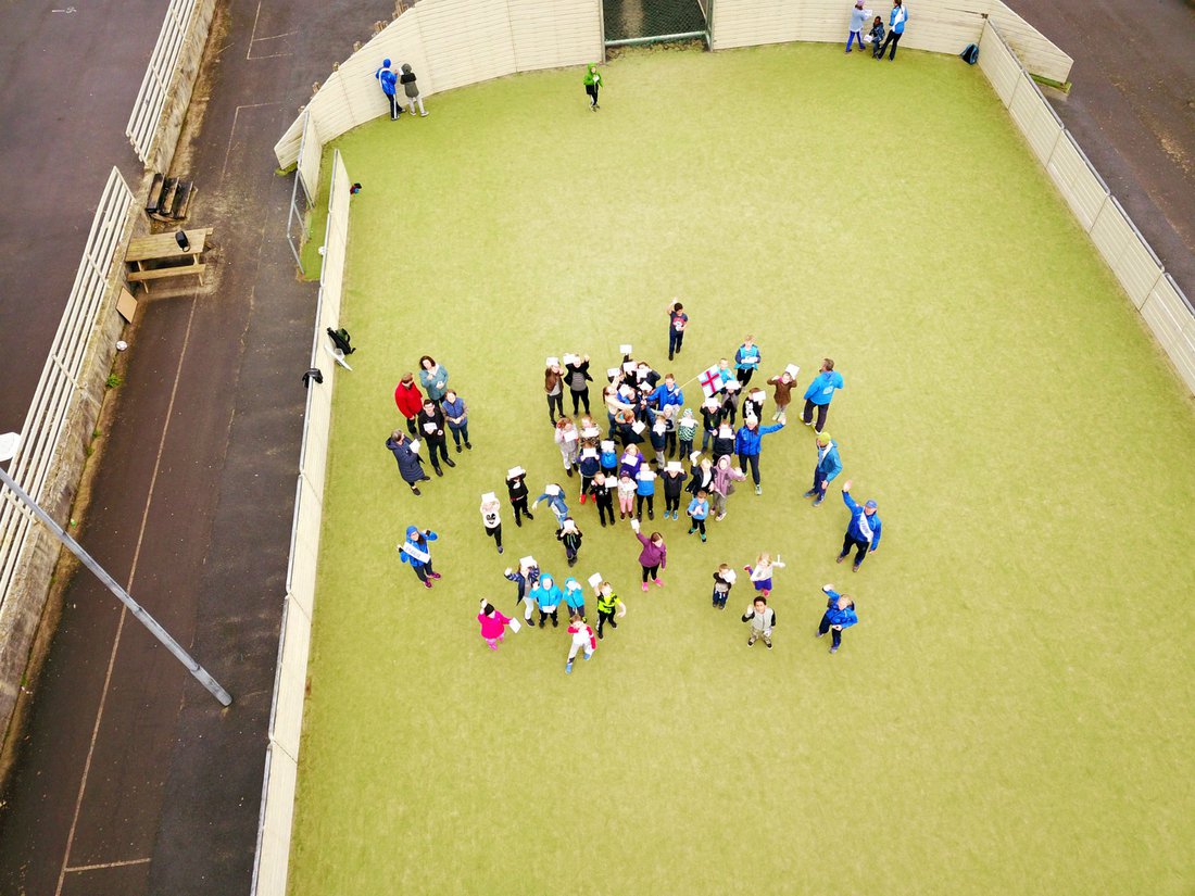 Det var lidt koldt denne morgen så vi varmede os lidt op ved at synge World Harmony sangen med bevægelser.
