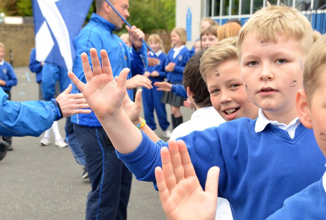 The deputy mayor of Glasgow, Councillor Gerry Leonard, received the international team at the entrance to Glasgow City Chambers.