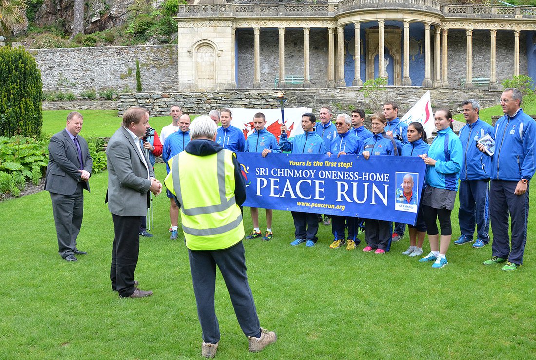 Also there to greet us is Lord ellis Thomas, a good friend of the Peace Run. Here he is awarded the Torch Bearer Award.