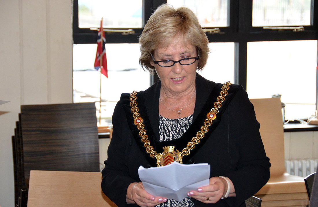 The Lord Mayor is there to greet us at the Peace Statue in Cardiff Bay.