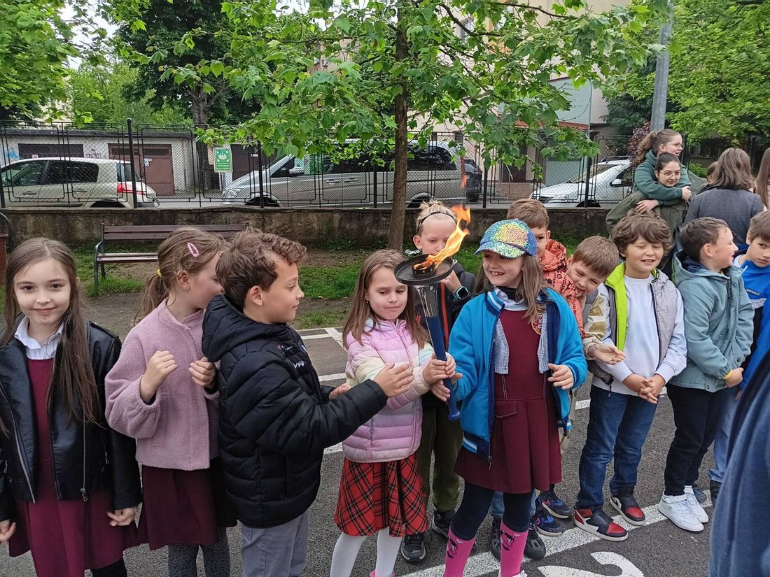 Momentul mult așteptat, înmânerea torței pentru copiii