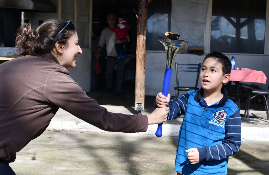 Vijayanta from Bulgaria officially hands the torch to Mrittunjoy from Greece