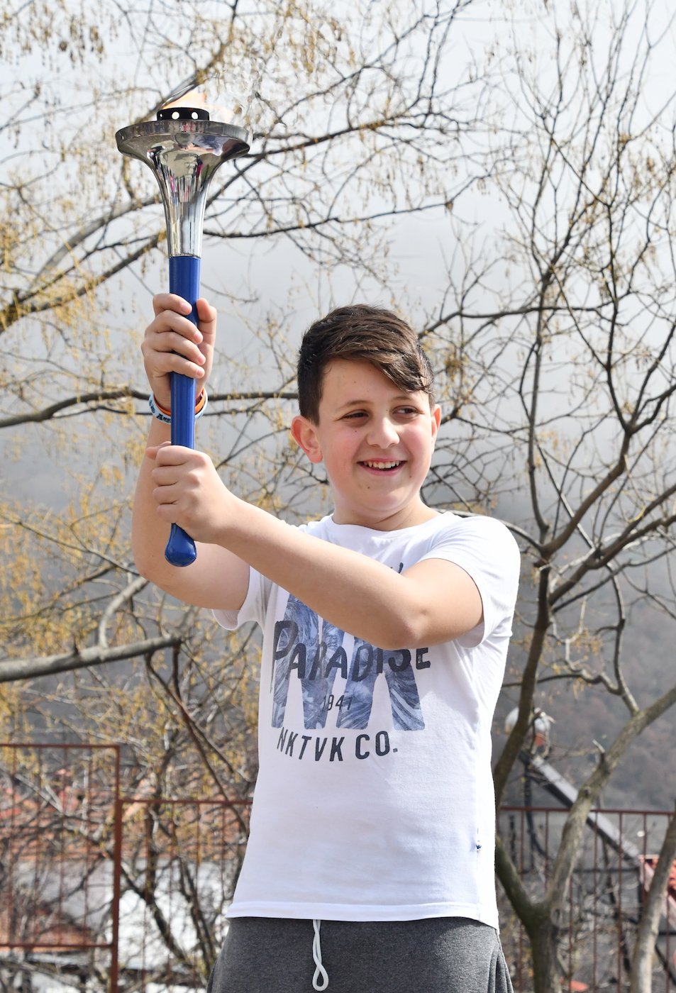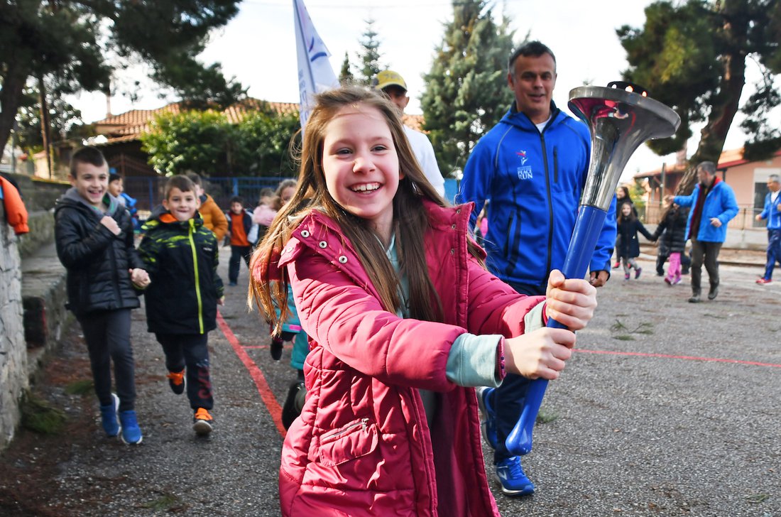 Irini, our Greek coordinator, invites the children to offer a silent prayer for Peace as they pass the torch. Irini means 'Peace' in Greek!