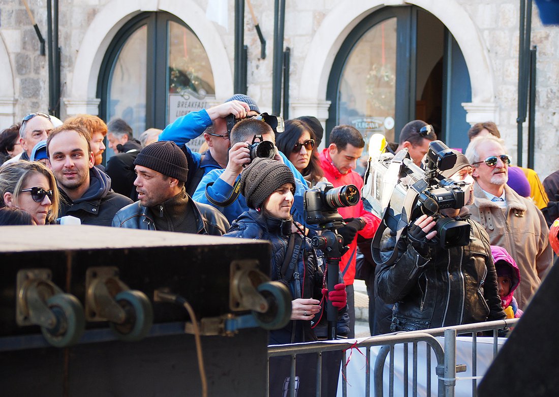 Our team with Mayor of Dubrovnik, Andro Vlahušić, in front of the Orlando's column.
