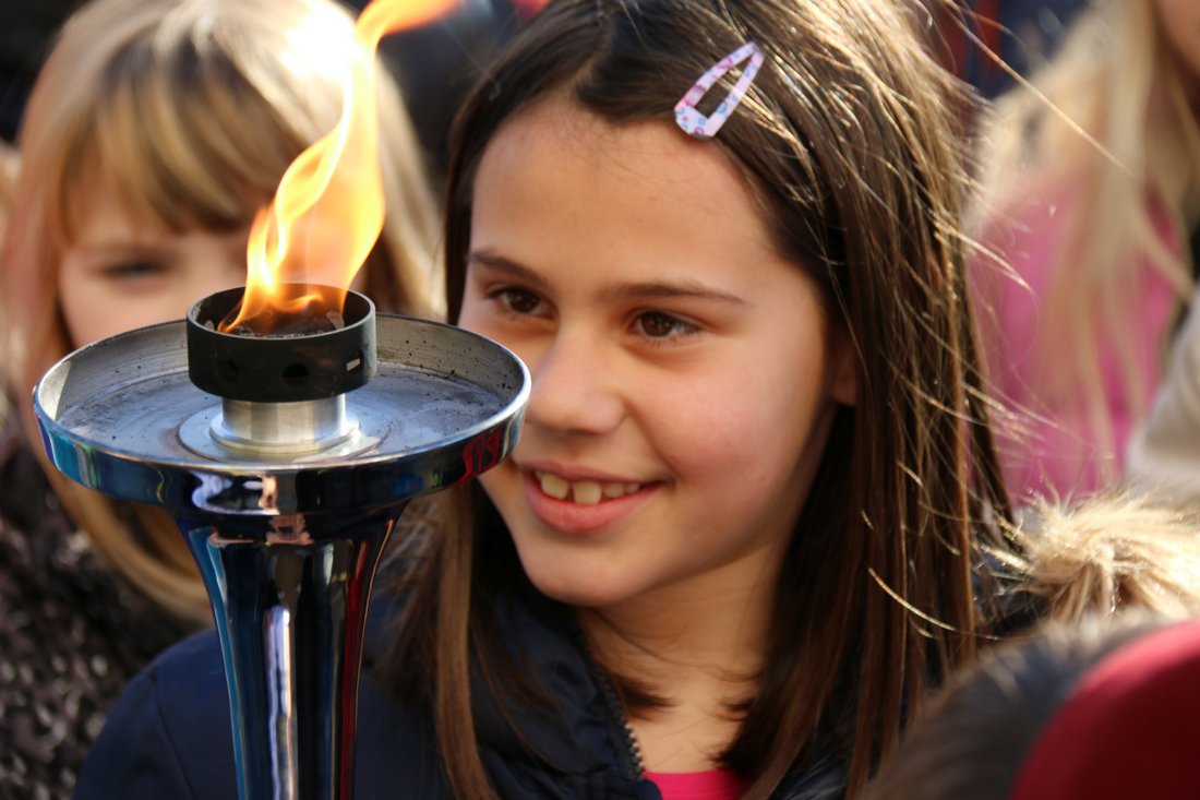 Much to our delight, Bishop Uzinić even ran the torch into the school!