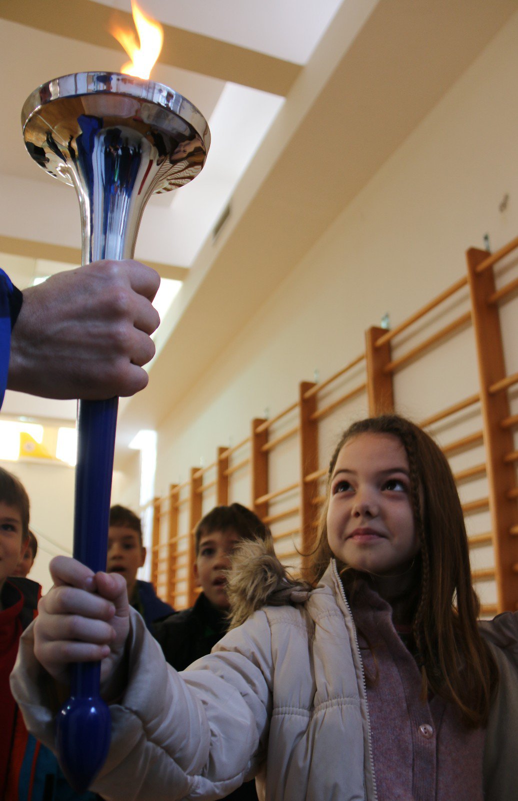 Some of the children helped to run the torch out of the school.