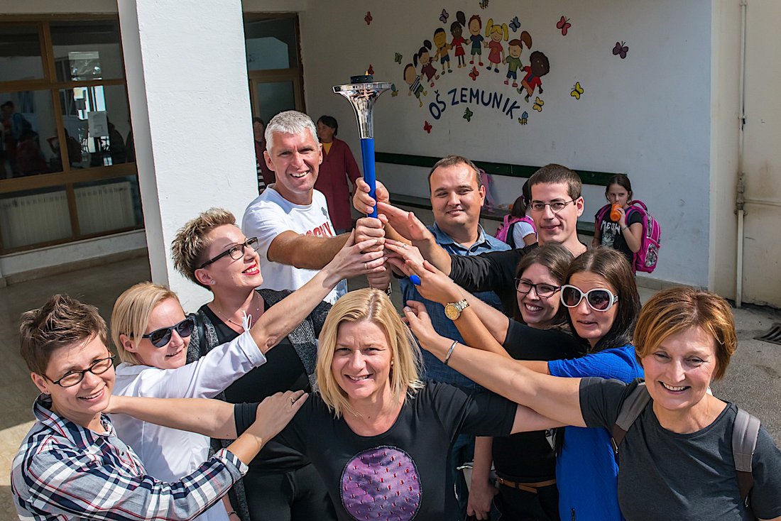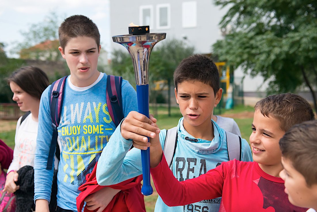 Narmadyuti from Slovenia presents the Peace Run at Zemunik School
