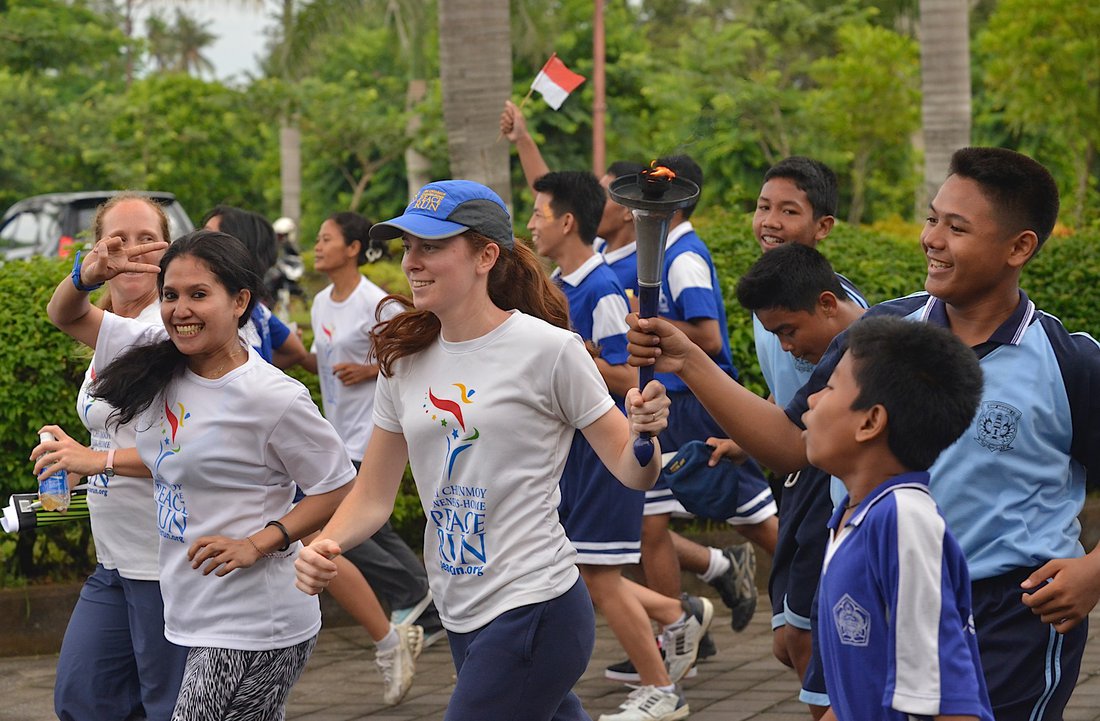 On arrival Sri Chinmoy Oneness-Home Peace Run Executive Director, Salil Wilson, handed the Peace Torch over to the Vice Bupati of Badung Regency, Made Sudiana.