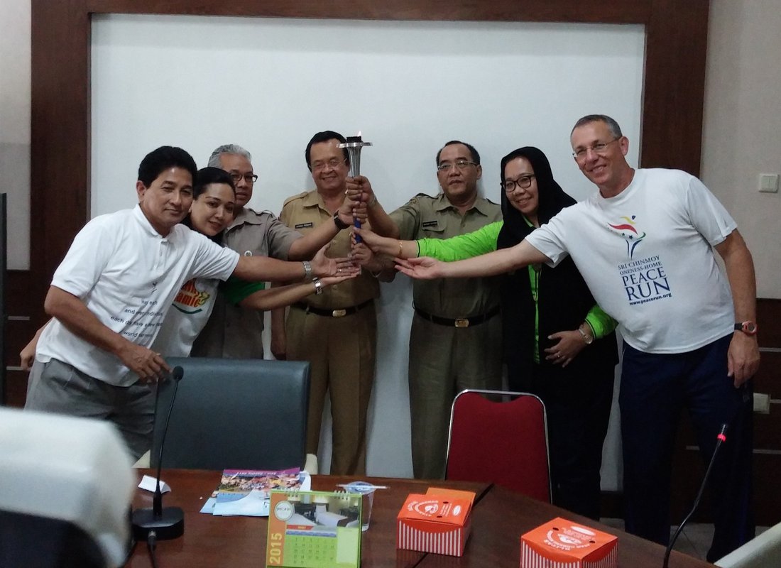 HRH Gusti Dipokusumo, HRH Gusti Febri, Kepala Kantor Kesbangbol Suharso, Vice-Mayor Dr. H. Achmad Purnomo, Assistant Administrator Rakhmat Sutomo, Ami Kadiono, President of the Rotary Club Solo, Salil Wilson, Executive Director of the Peace Run.