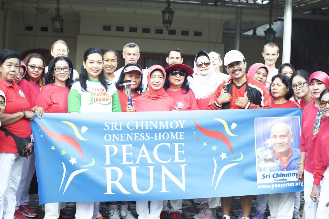 HRH Gusti Dipokusumo, HRH Gusti Febri, Kepala Kantor Kesbangbol Suharso, Vice-Mayor Dr. H. Achmad Purnomo, Assistant Administrator Rakhmat Sutomo, Ami Kadiono, President of the Rotary Club Solo, Salil Wilson, Executive Director of the Peace Run.
