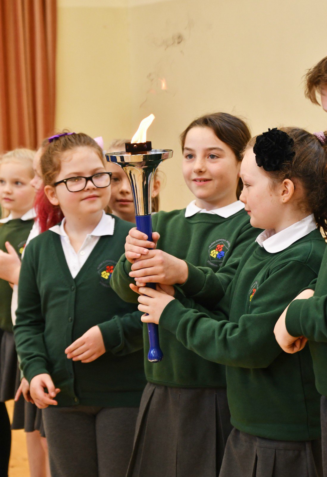 Principal McDaid gladly holds the torch and accepts a certificate of appreciation from the Peace Run.