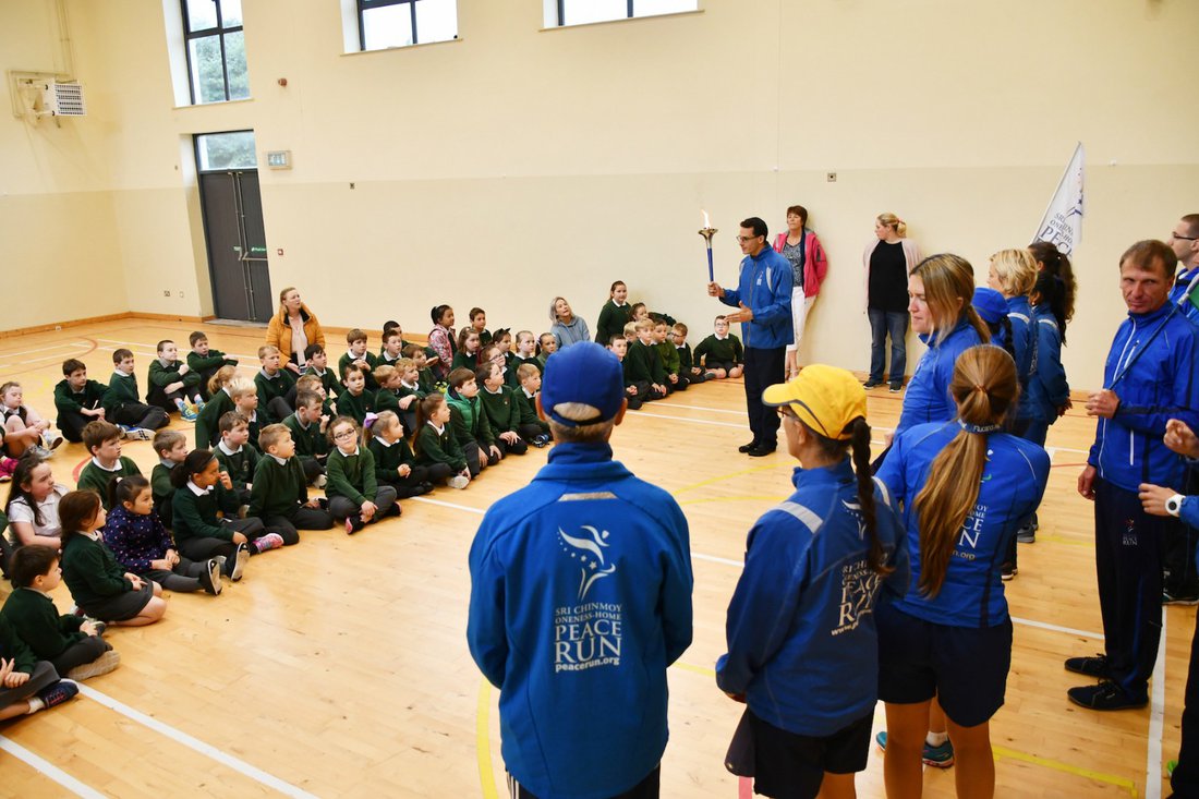 Amalendu, our experienced Australian team member, tells the children about the Peace Run endeavours all over the world.
