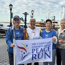 Frá vinstri til hægri: Snatak Eymundur Kjeld, sem skipulagði fyrstu Sri Chinmoy heimseiningar Friðarhlaupin á Íslandi, móðir hans Kristrún Eymundsdóttir og stjúpfaðir hans Halldór Blöndal fyrrverandi ráðherra, alþingismaður og forseti Alþingis.