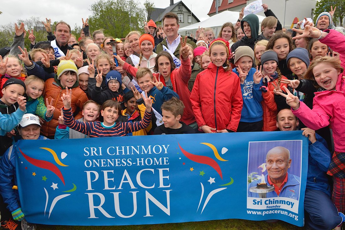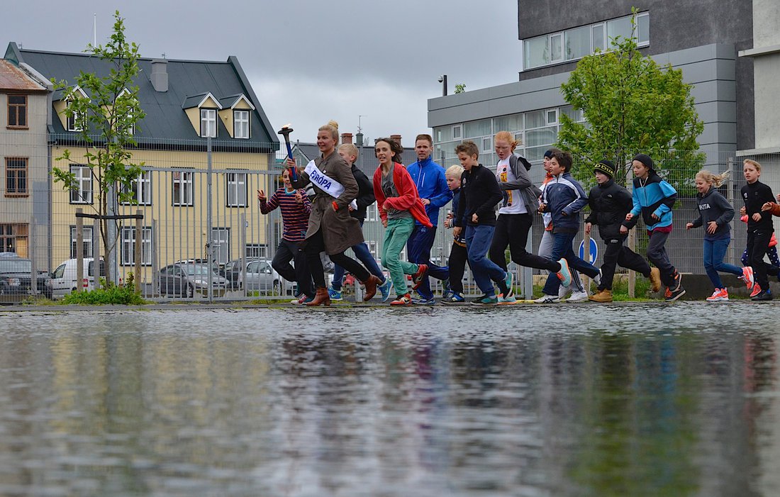 Að athöfninni lokinni hlupu allir saman einn hring í kring um Tjörnina.
