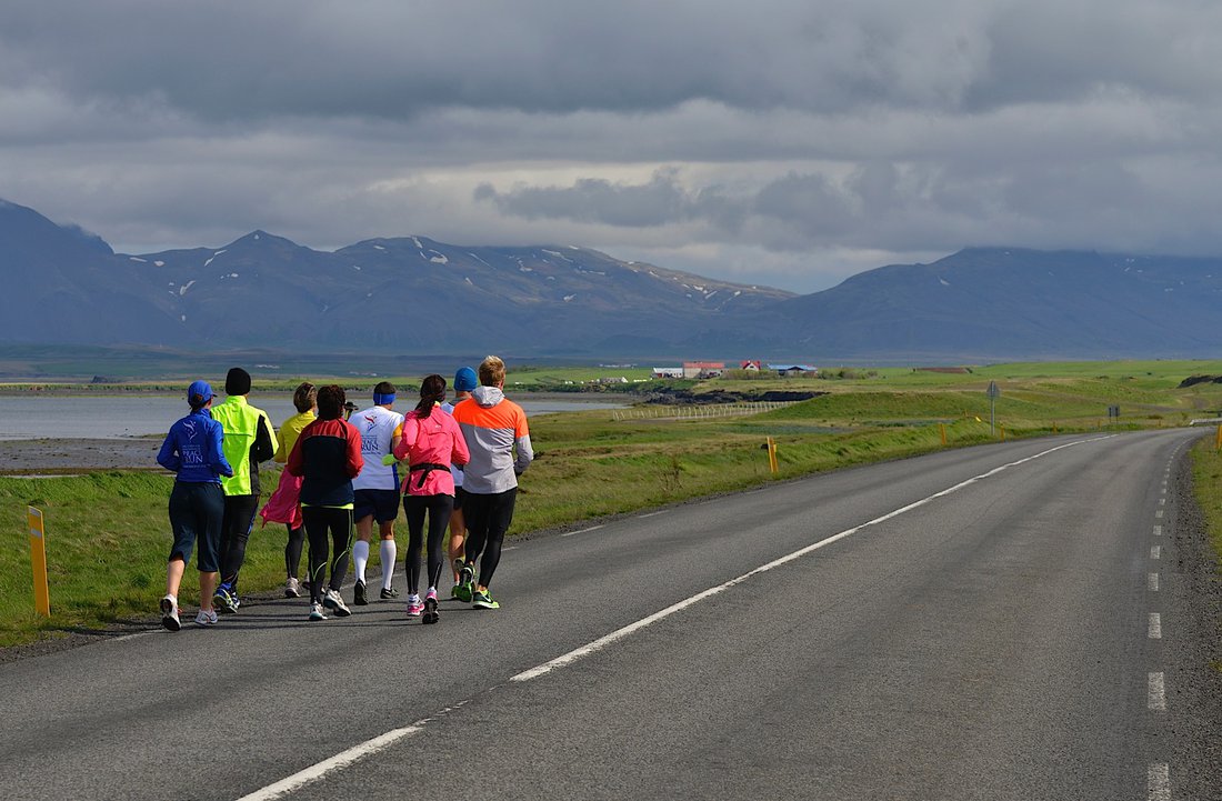 Our goal was to run from Akranes to Borganes, a distance of 63 km.We started the day with our friends from the Akranes Running Club, Skagaskok, who came to run with us some of the way out of town.