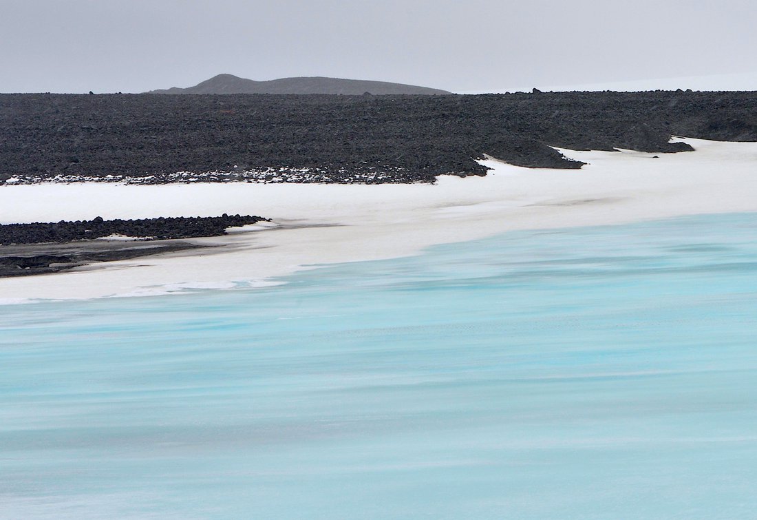 On the top of the glacier, conditions were brutal. Driving sleet and very cold, with almost zero visibility.