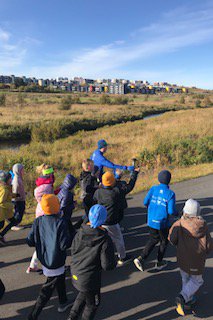 After the game we exited the sports field and ran as a group to the back of the school where we more sheltered from the wind. We sang the children our Peace Run Theme songs and rewarded Ásdís with the Torch Bearer Award for her selfless and tireless work for the running club through the years. The Torch Bearer Award is an award inspired by Sri Chinmoy to recognize people who have inspired others with their service to their community, country or even the world at large.