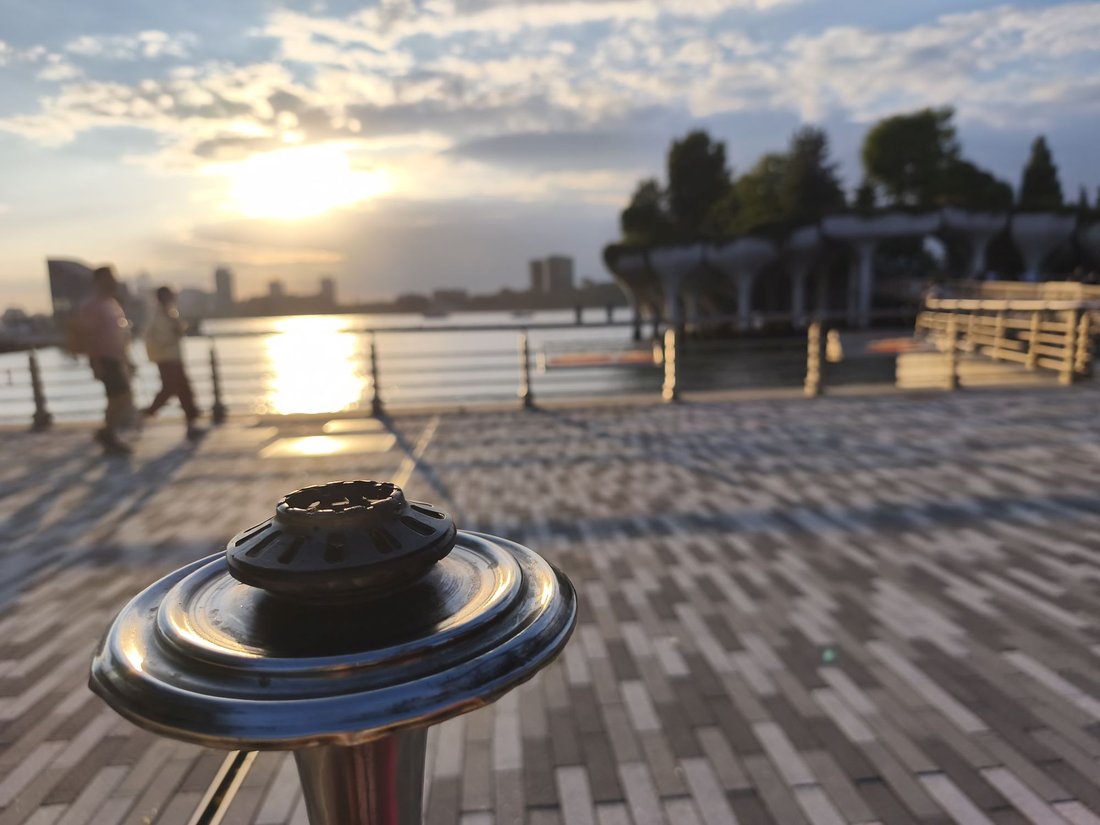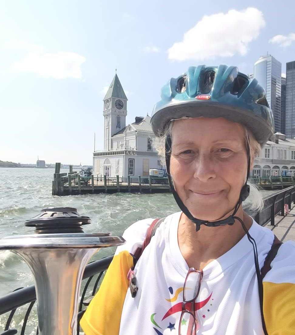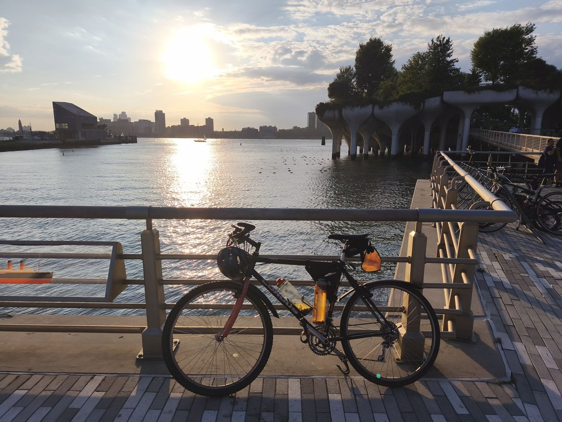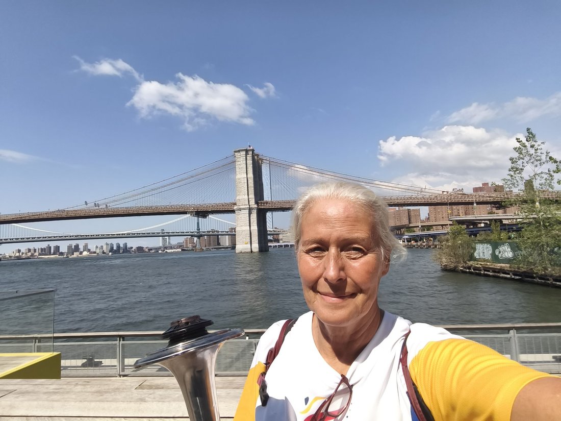 The next day I took a bike to Manhattan by subway, with the intention to make the 20 Bridges swim into a Peace Triathlon by biking some 50 km all around Manhattan with the Peace Torch and then running a symbolical 5 miles from Pier A to the United Nations. But the bigger gears started to malfunction. So I lit the Peace Torch at the start and finish of the swim at Pier A and enjoyed a leisurely 20 mile sightseeing bike loop along the Hudson bike path and the East River Greenway (with lots of construction detours and dead ends), via the United Nations headquarters. Which was actually great for active recovery!