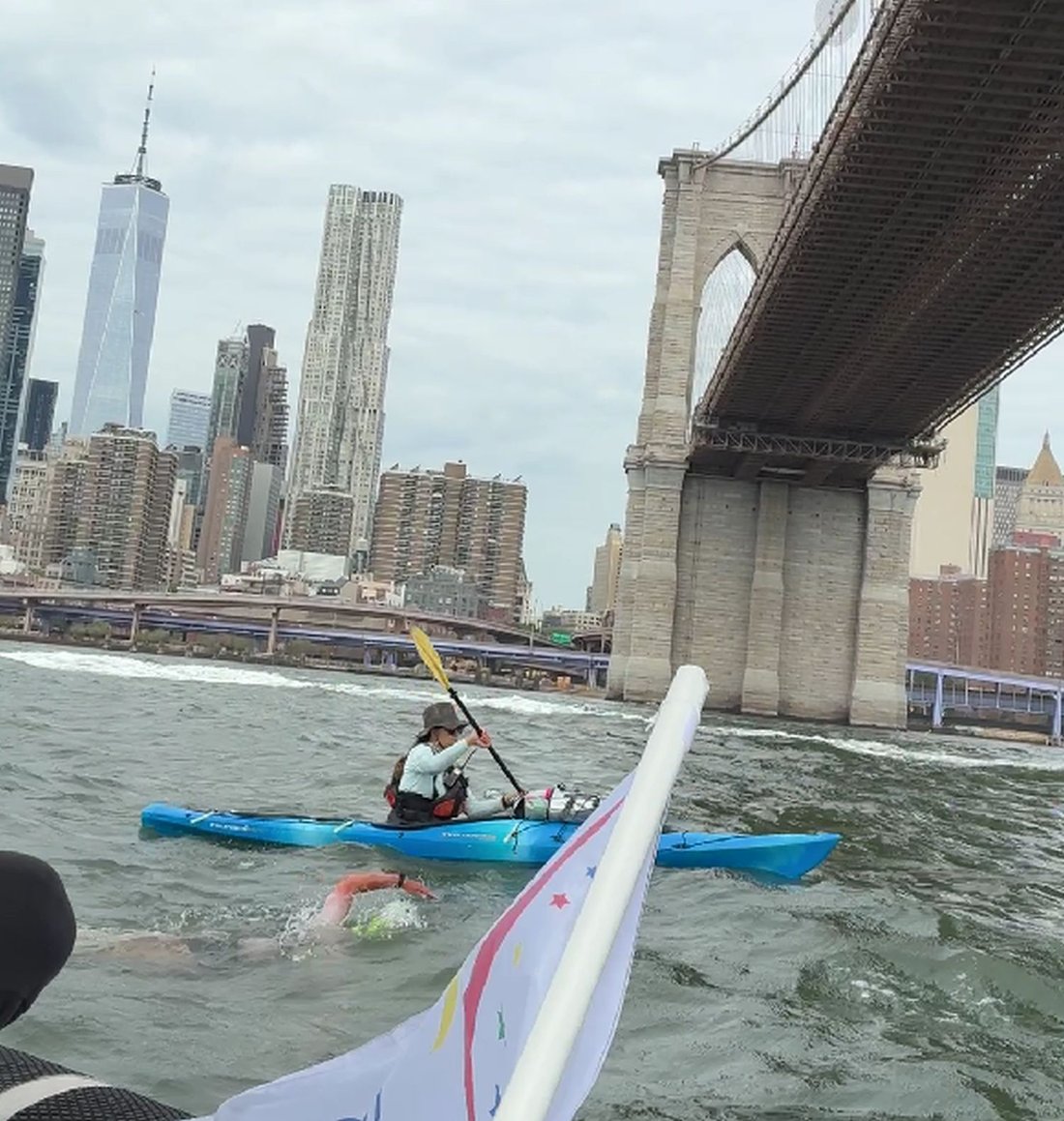 So happy and grateful - to have made it, and so much faster than expected, and over 1 hour ahead of schedule, in 9 hours 34 min. 07 seconds. We had a fast current, they said. And I "finished strong", NYOW postet :). I had expected around 12 hours or more, with a much windier forecast, and was even a bit worried before for lack of training. My last Lake Zurich swim 2024 (26 km) was 12 h 20 - what a fast ride here! (And it also seems I have become the oldest female to swim around Manhattan at age 68 + 9 months!)