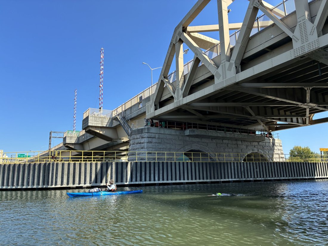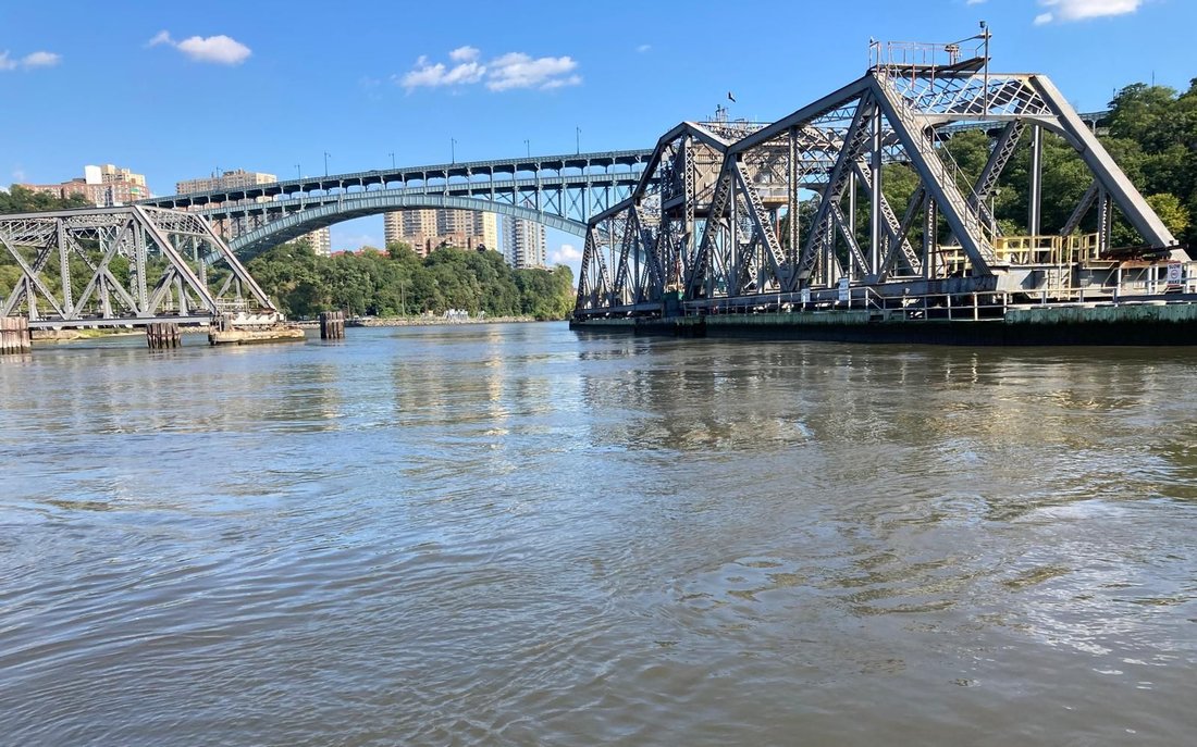 Crossing Spuyten Duyvil swing bridge into the Hudson at 4:15 pm, more than 1 hour earlier than scheduled!