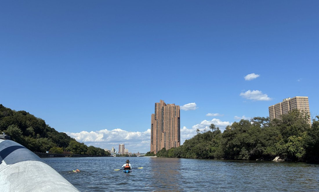 Approaching the end of the tidal Spuyten Duyvil Creek - where it merges into the mighty Hudson River. Spuyten Duyvil swing bridge (no 19!) already visible in the distance.