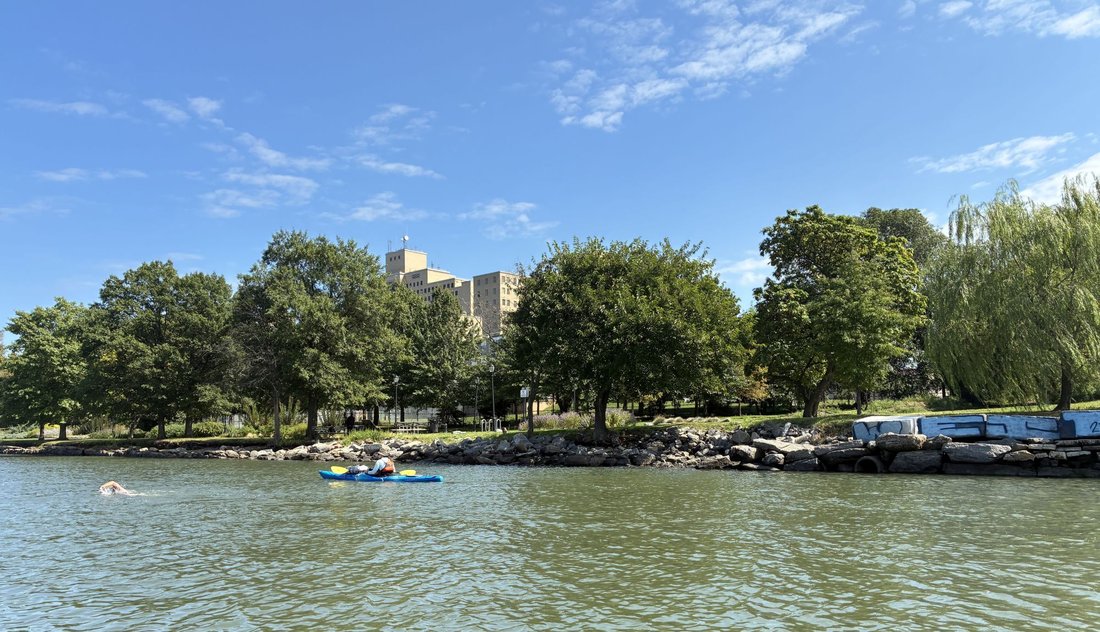 Passing Wards and Randall's Island - where we had multiday Sri Chinmoy Ultra Races for so many years. The East River becomes calm and peaceful before merging into the Harlem river. It feels calmer than Lake Zurich to swim along this green island so close to the shore. All is good. ( I was not sure how long I would have lasted in conditions like at the UN.)