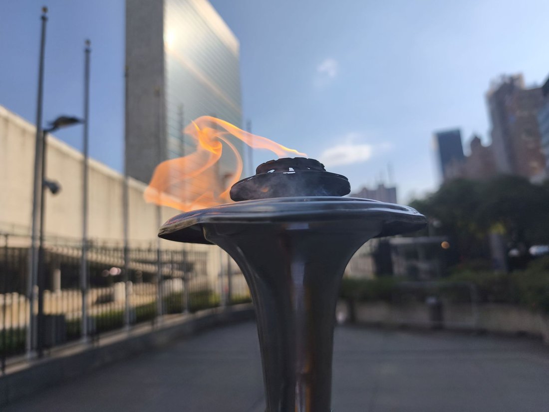 At th UN I was surprised and even disappointed to find that the beautiful nation flags are only up during "office hours" and not on weekends. So I lit the Peace Torch outside to sincerely dedicate my adventure to the ideals of the United Nations. We tend to see all their shortcomings, but I am convinced they still play a very important role for mankind and for a peaceful future on this planet.