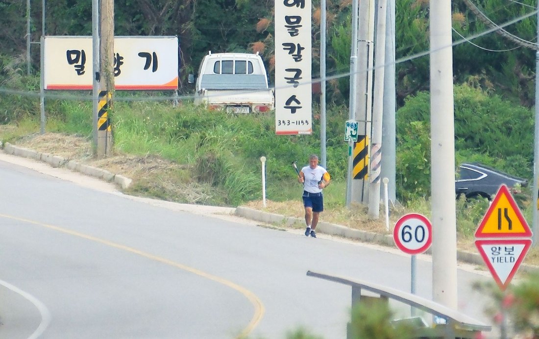 너무 빨리 달리지 마세요\~ 제한 속도 60  달리기 주자에 양보하세요
