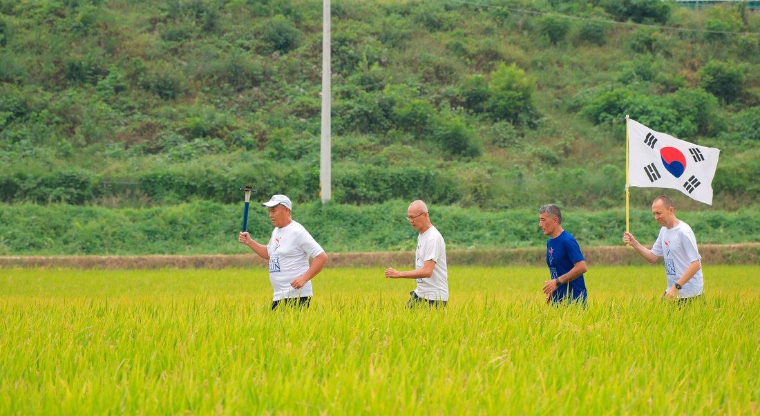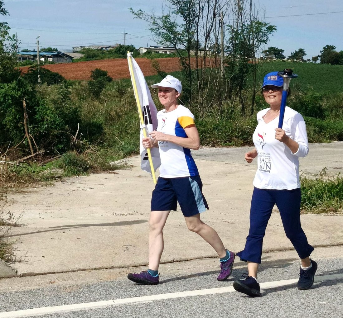 The torch has travelled 30.0 km from Younggwang to Hyunkyung Town Hall.