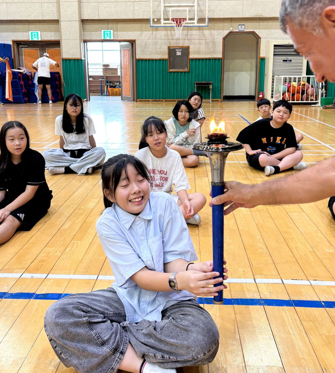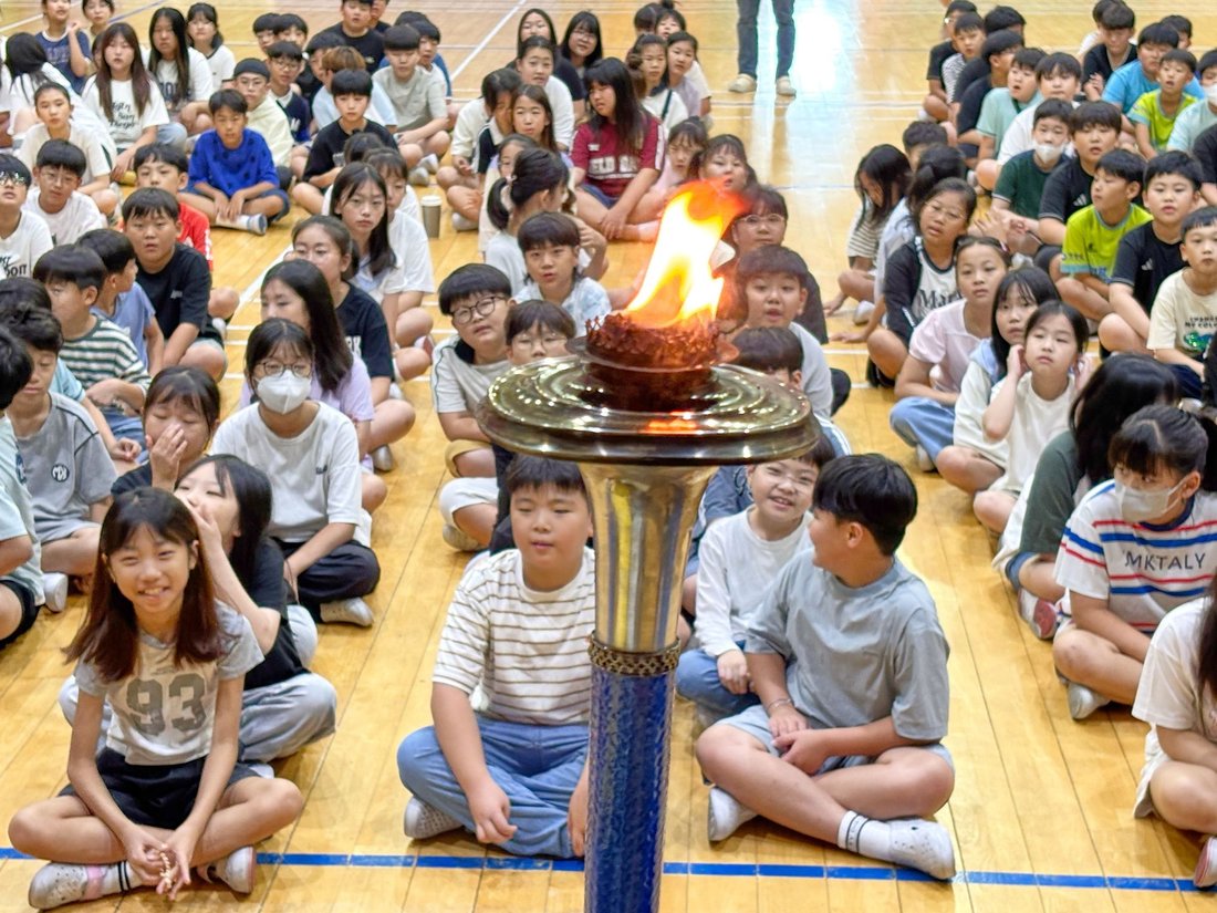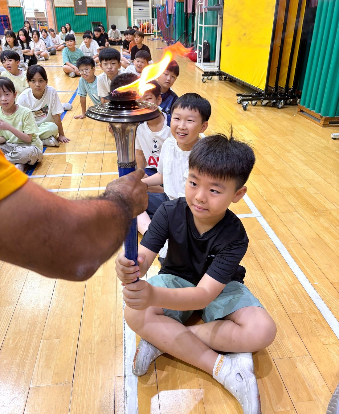 모든 달리기 주자들의 나라를 열정적으로 소리쳐서 맞춰준 학생들