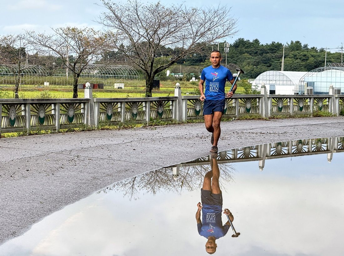 The torch has travelled 40.0 km from Hyunkyung to Mokpo.