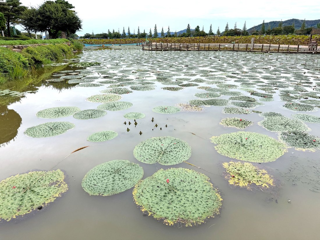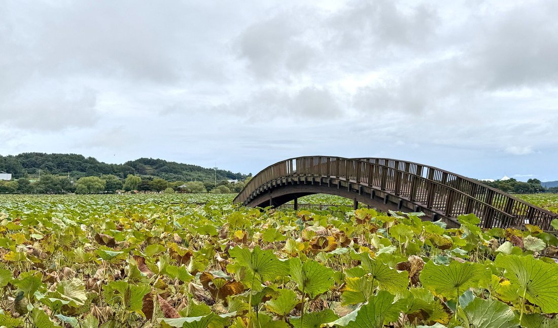 여전히 내리는 빗 속을 뛰어서 회산 백련지로