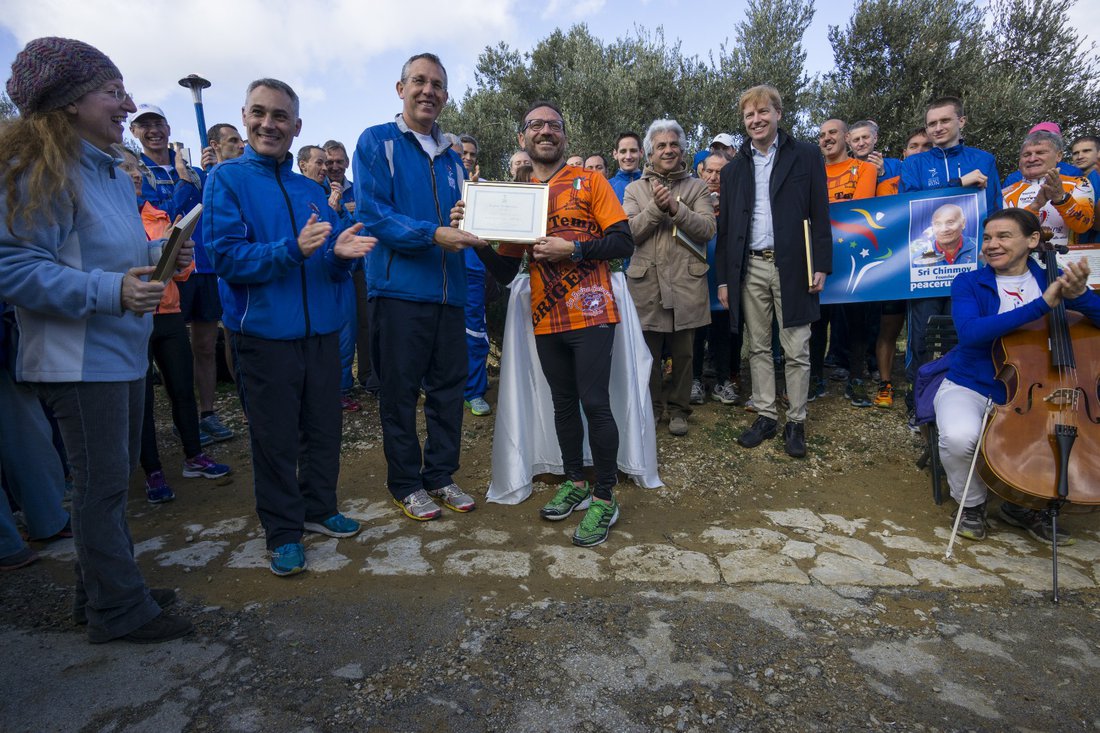 La consegna di un attestato di partecipazione e collaborazione al dott. Antonio Calamita dell'Associazione Sportiva “Valle Dei Templi” che ha studiato il percorso della staffetta nel parco.