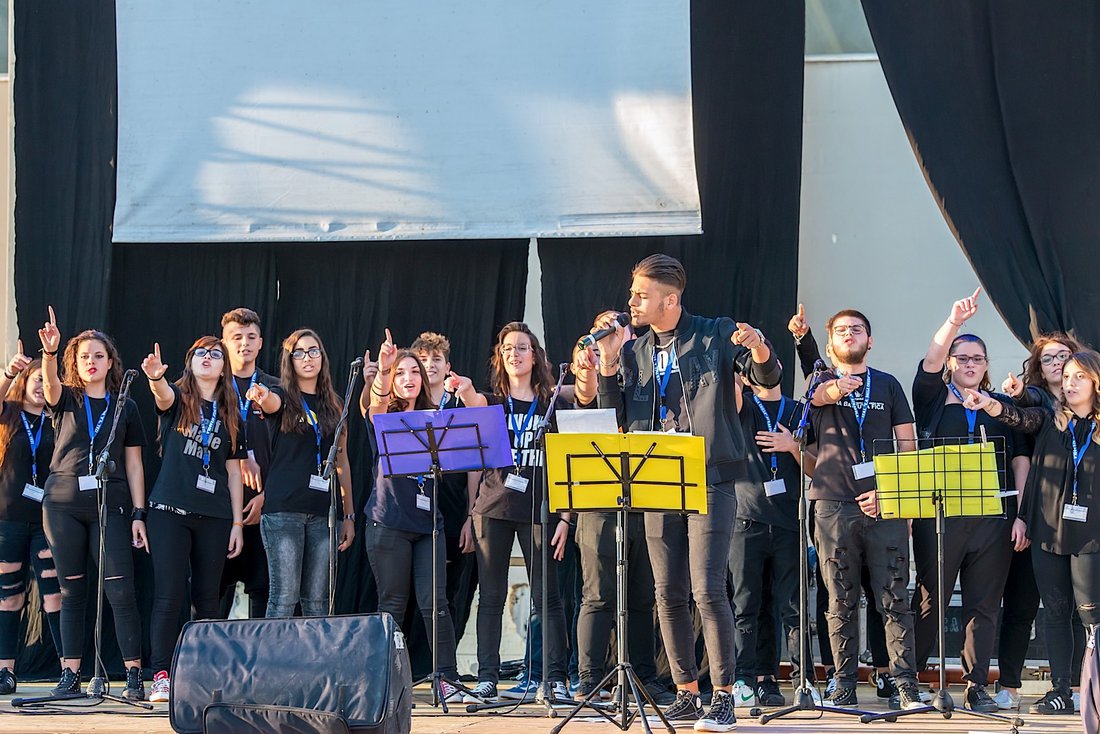 A huge crowd gathered in front of the city hall. A highly professional children choir from the Opera House Teatro San Carlo of Napoli directed by Stefania Rinaldi and the Orchestra of Liceo Margherita di Savoia directed by Antonella Palazzo, performed an arrangement of the Peace Run Song, the World Harmony Run Song, the Bernstein composition " One hand, one heart", arranged by professor Bruno Persico and Preludio in sol minore Op. 23 n. 5 of Rachmaninoff arranged by professor Maria Teresa Fico and Giovanni Grima.