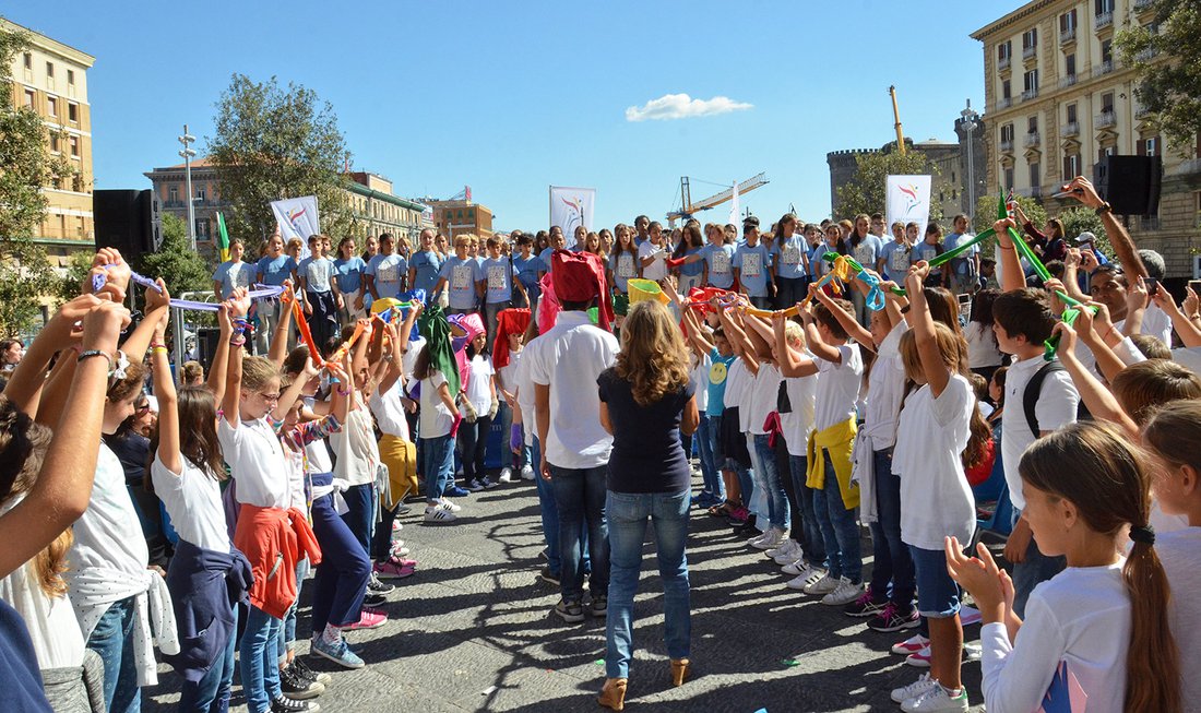 Thanks to the special work of Stefania Rinaldi, director of white voices chorus of theatre of San Carlo, who directed her chorists for an execellent performance of the official anthem of Peace Run