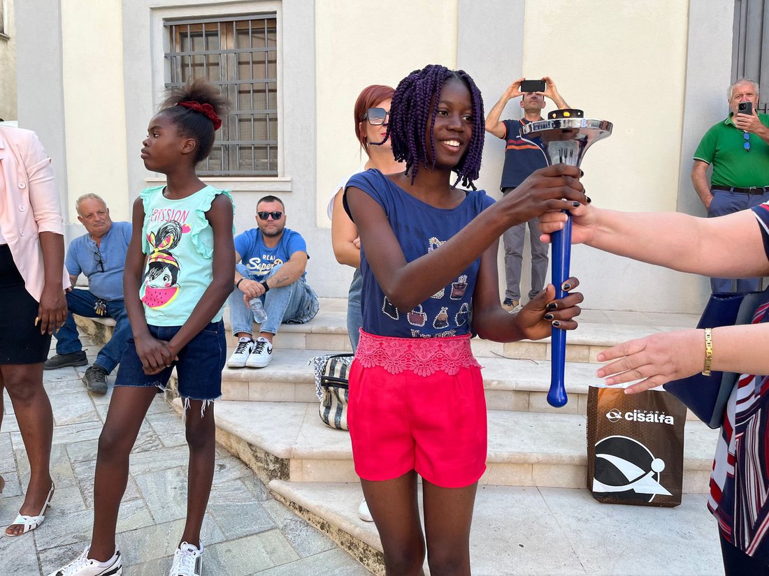 Stepping forward to accept the symbolic Peace Torch were Mayor Alex Aurelio, joined by the Councilor for Culture, Tania Roseti, and the representative of the Municipality of Monte Giordano, Domenico Lufrano. The atmosphere was charged with youthful energy as a children's choir lent their voices to the occasion, filling the air with songs that celebrated peace.