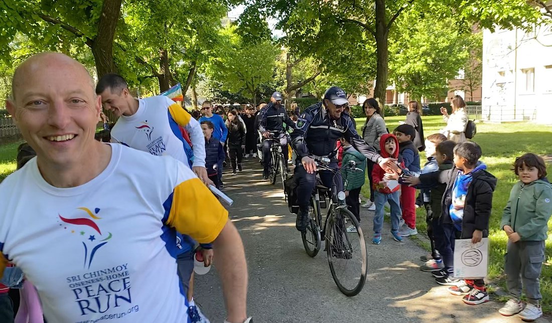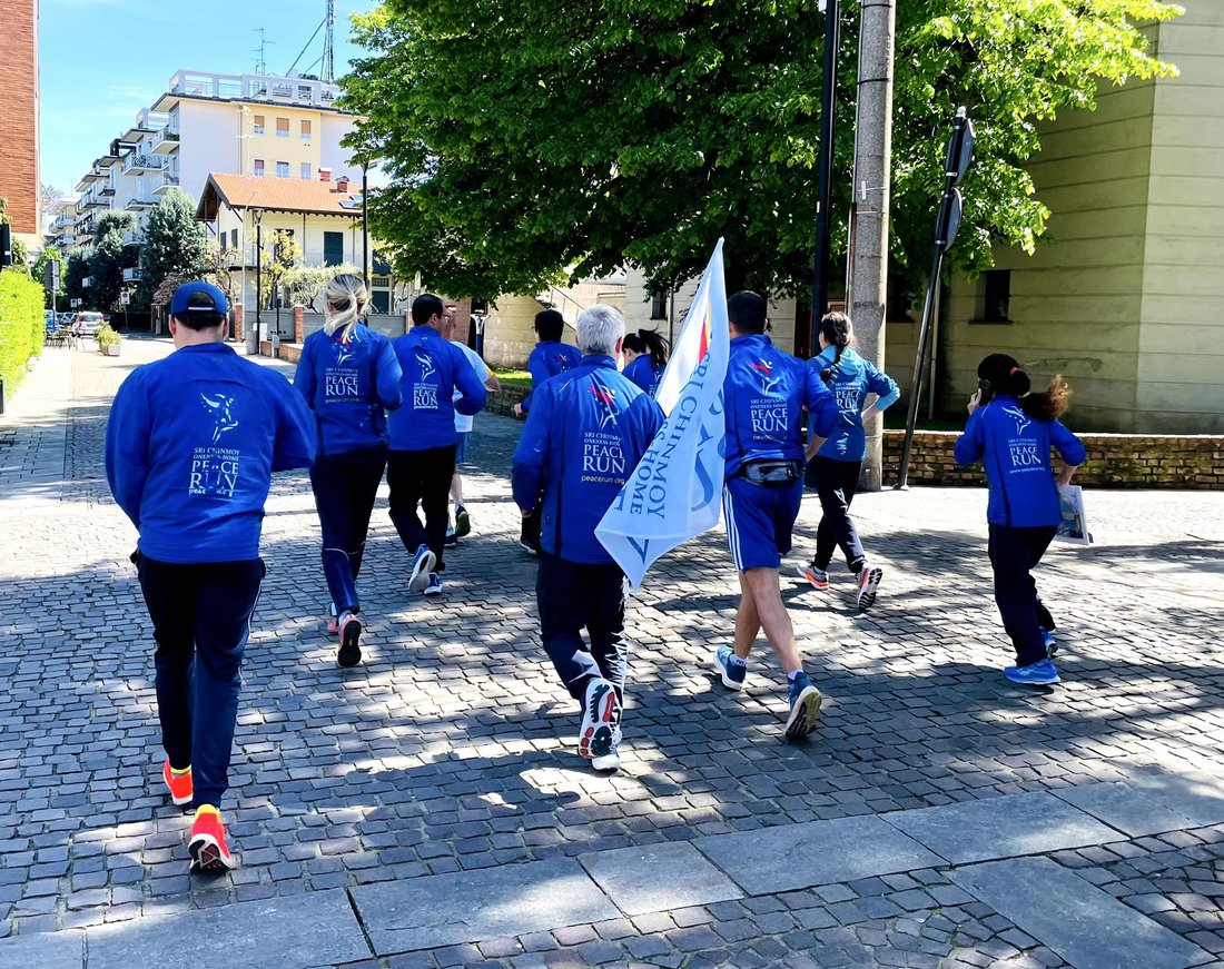 Start at the statue of the Peace Run founder, Sri Chinmoy, in Cesano Boscone.