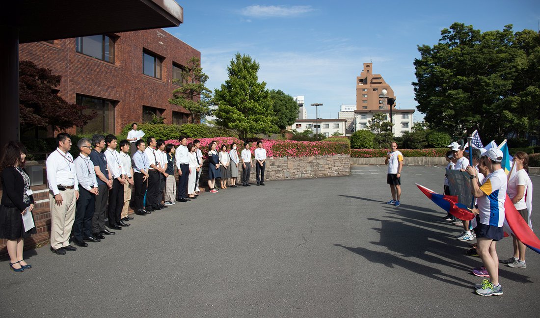 A representative of the city received the Torch. She spoke about World Peace being a universal aspiration and gave us her prayers for a successful Peace Run in Japan and a safe journey.