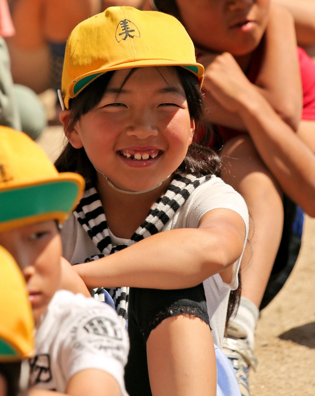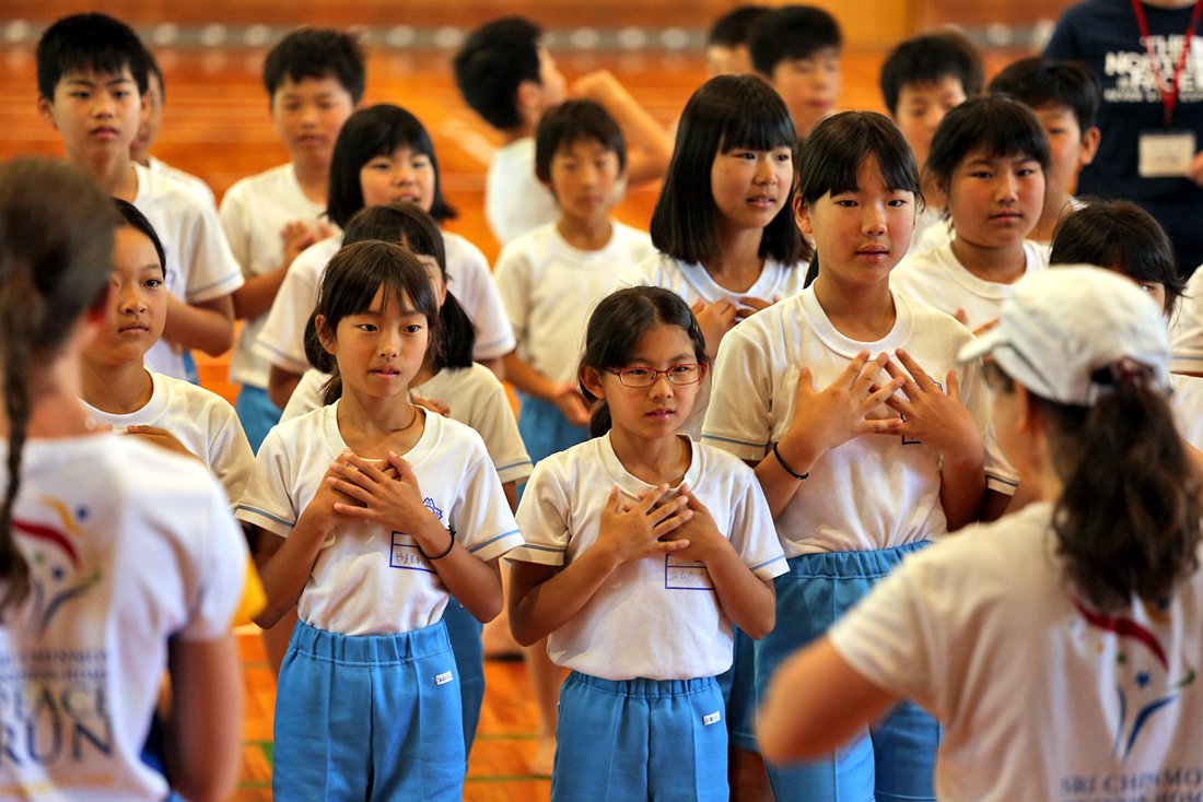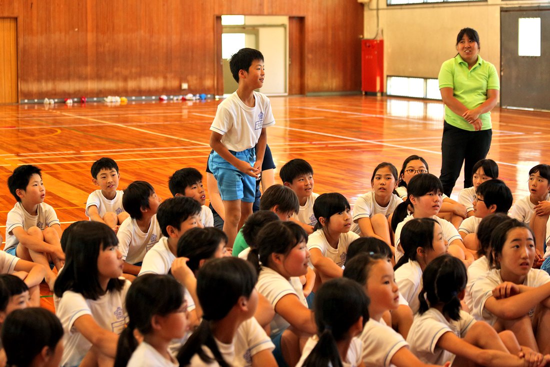 The kids from Kawahara Dai-ichi Primary School were all lined up outside their school to welcome the team as we ran in.