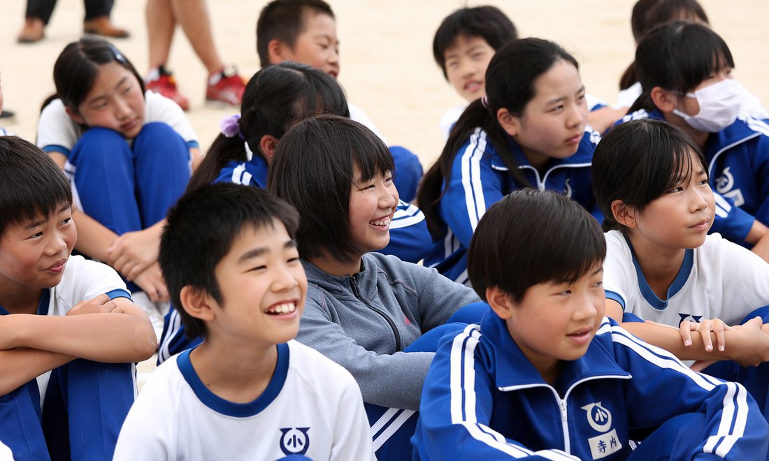 We run together with kids from Shizuki Primary School for about 2km to our goal of the last day, Awaji city hall.