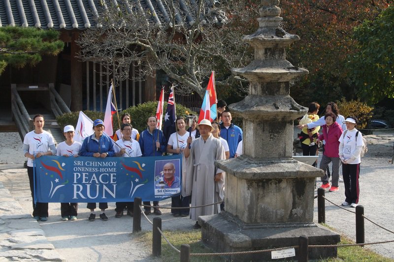 우리는 세계 평화 달리기 여권을 가진 평화 달리기 멤버
