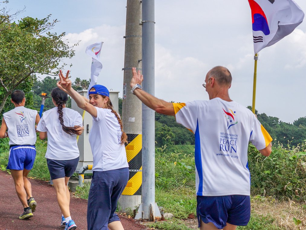 달리기 주자에게 아이들이 하이파이브로 주는 에너지~