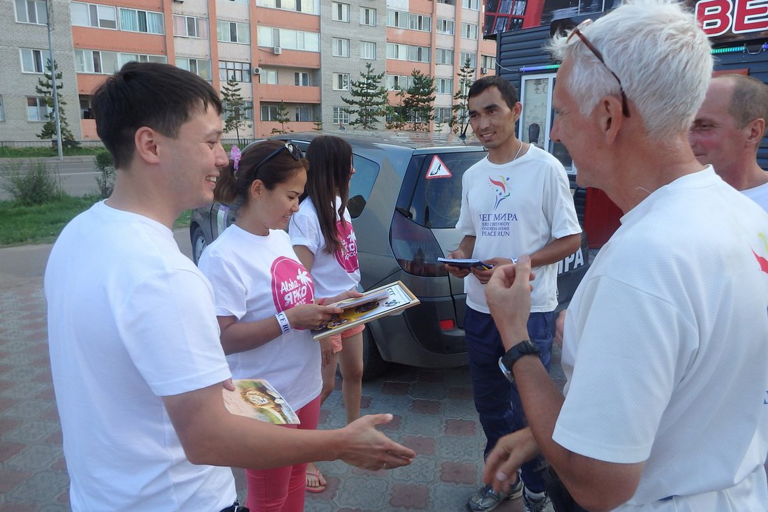 Ануар (Жизнерадостный) бежал с командой по городу 3 км, раздавая лифлеты