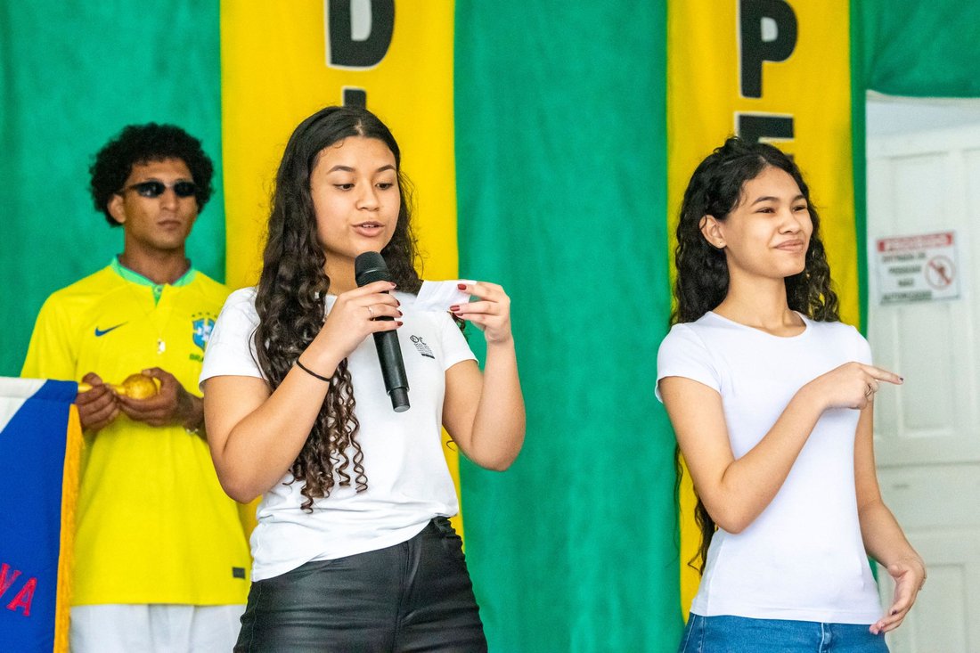 A apresentação dos alunos foi emocionante: Eles interpretaram “We Are the World” com a participação de colegas com necessidades especiais, acompanhados por tradução em Libras. Um verdadeiro espetáculo de diversidade, inclusão e amor.