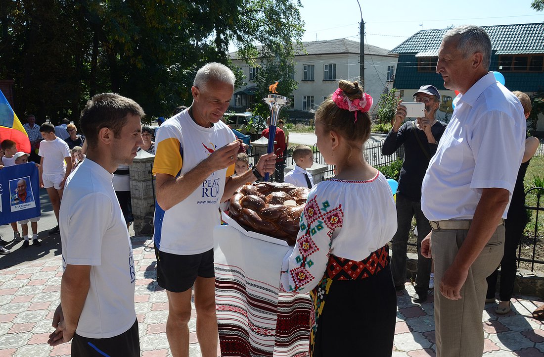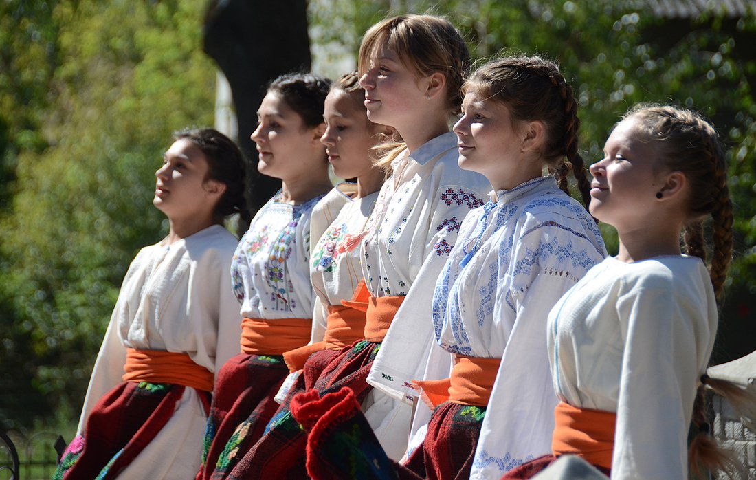 We left the Ukraine and were received by a group of children in traditional costumes...