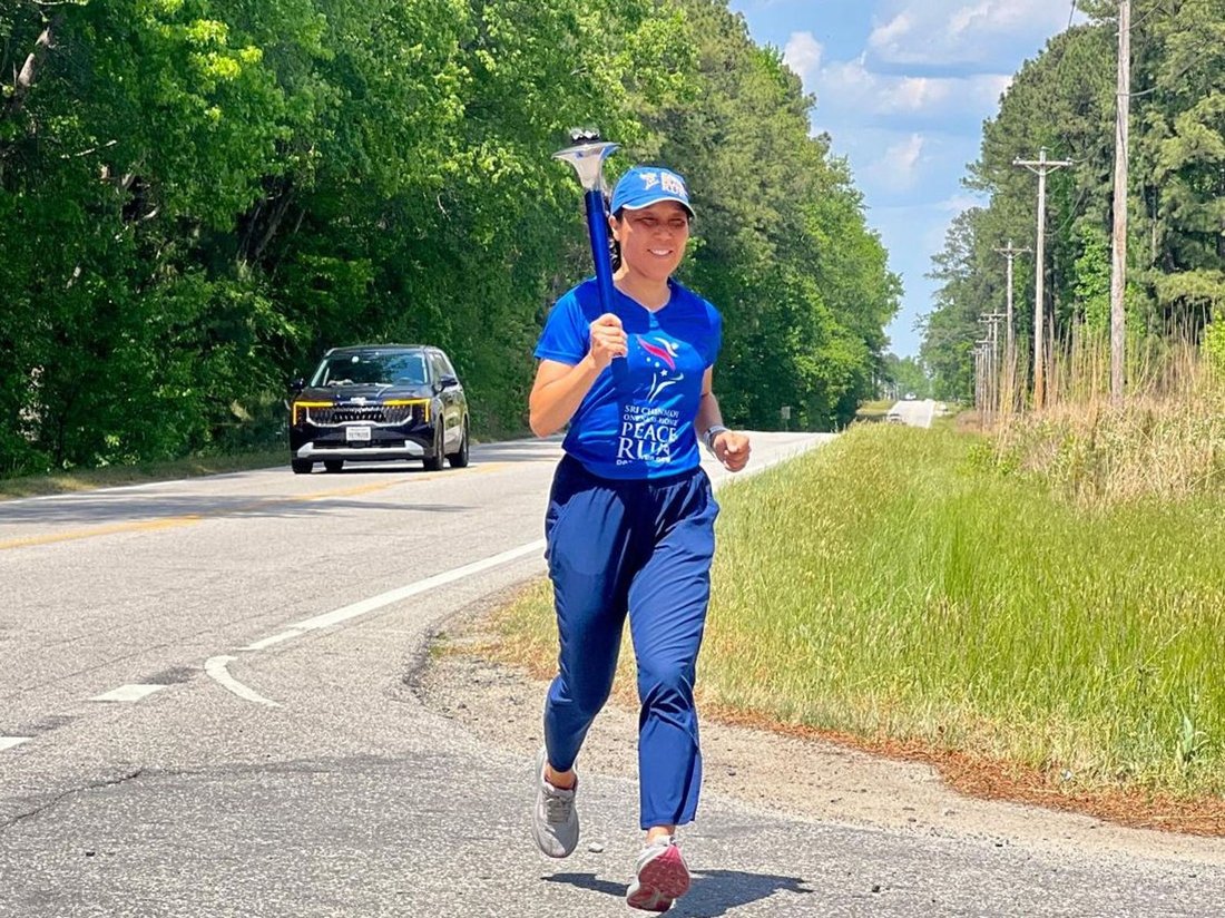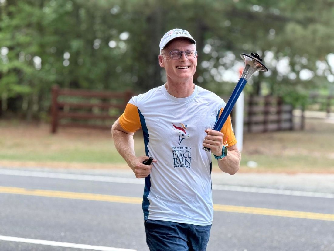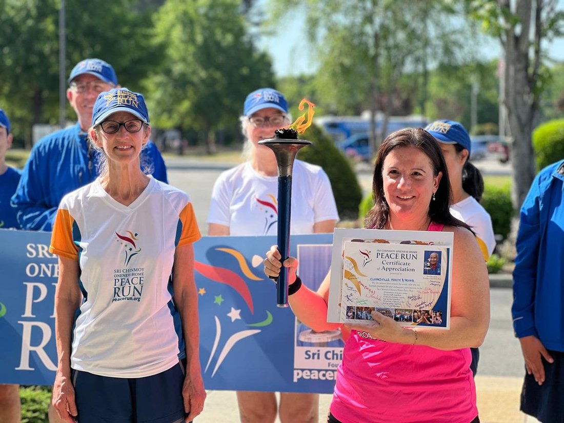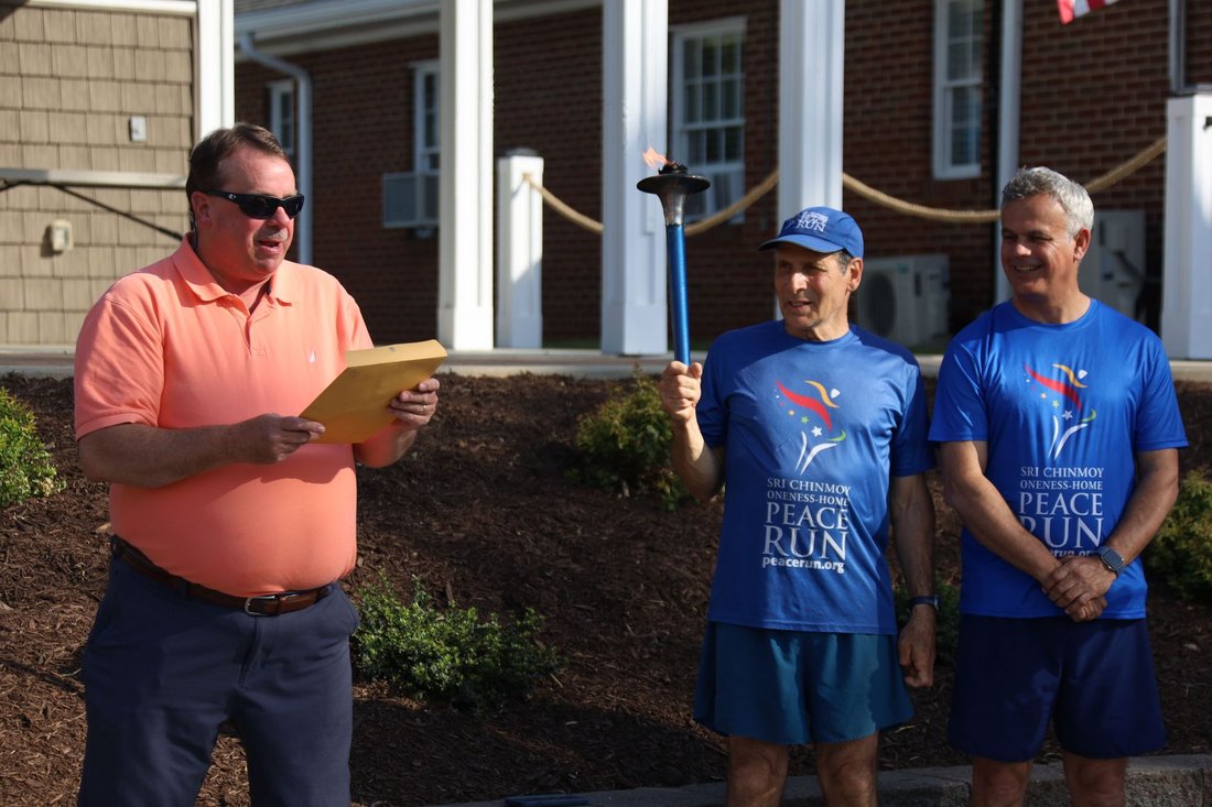 Peace Run Executive Director Salil Wilson introduces the Torch Bearer Award. We have a recipient in the audience.