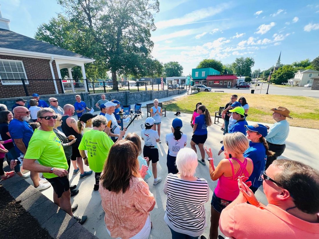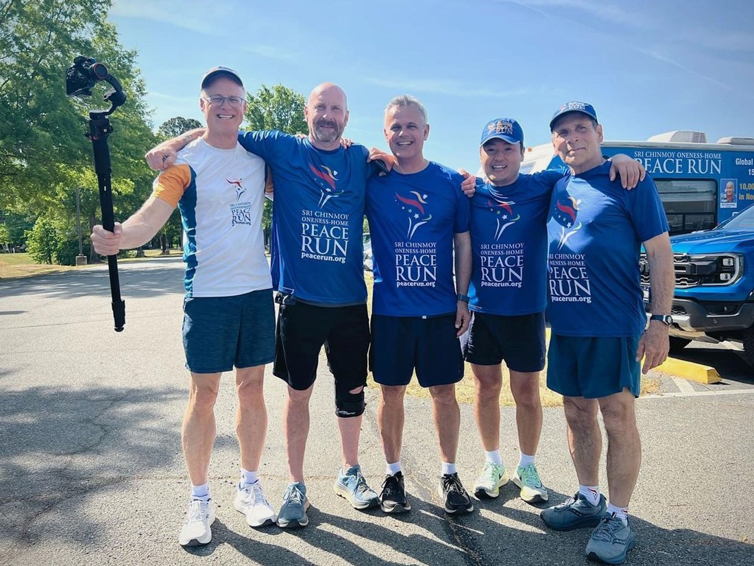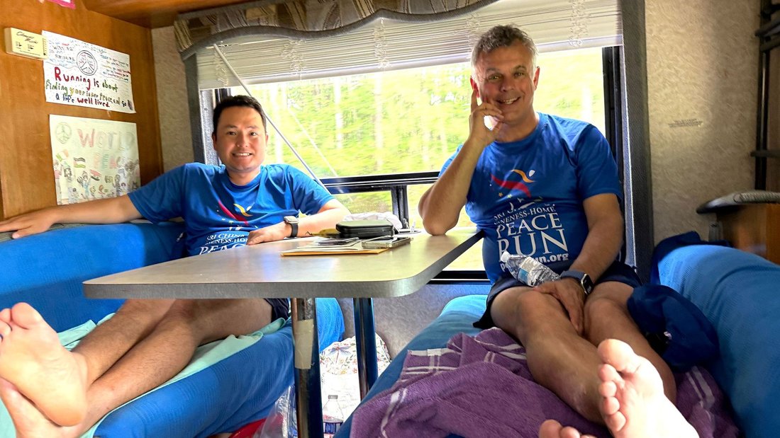 The men's team gives their final farewell to one of our Peace Run teammates of the day and great new friend Ed. Thank you for joining us!