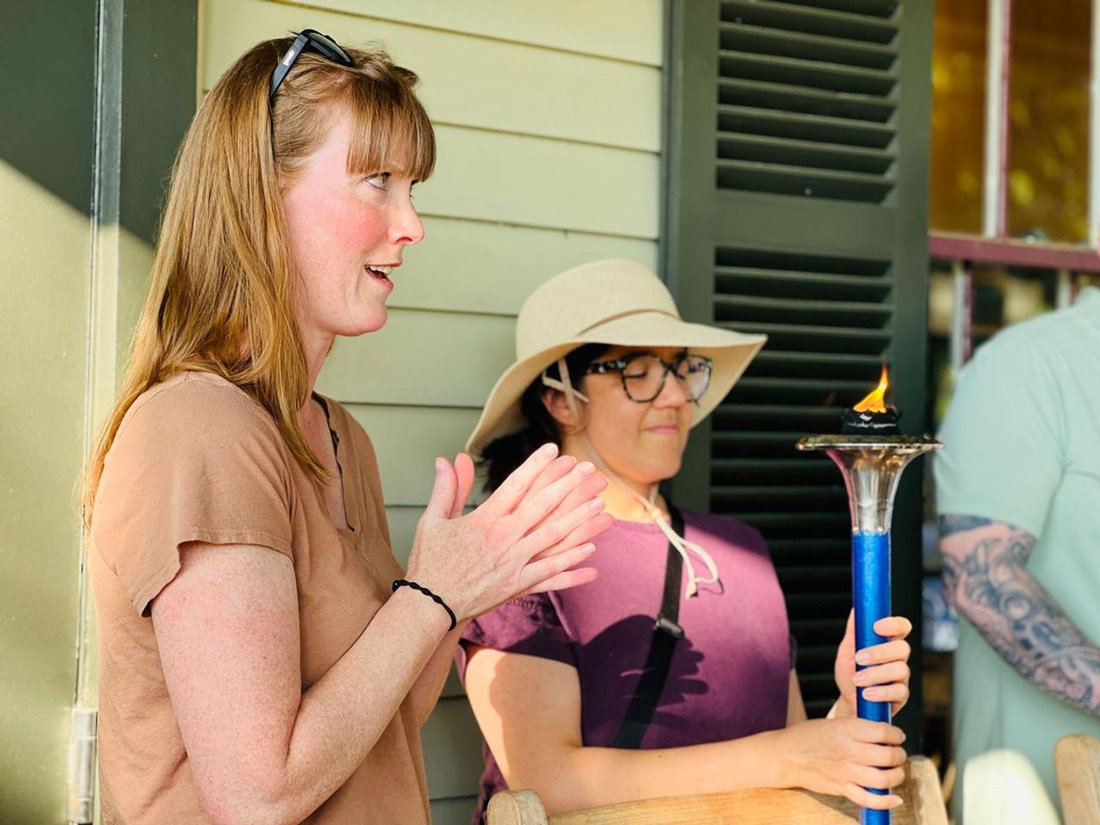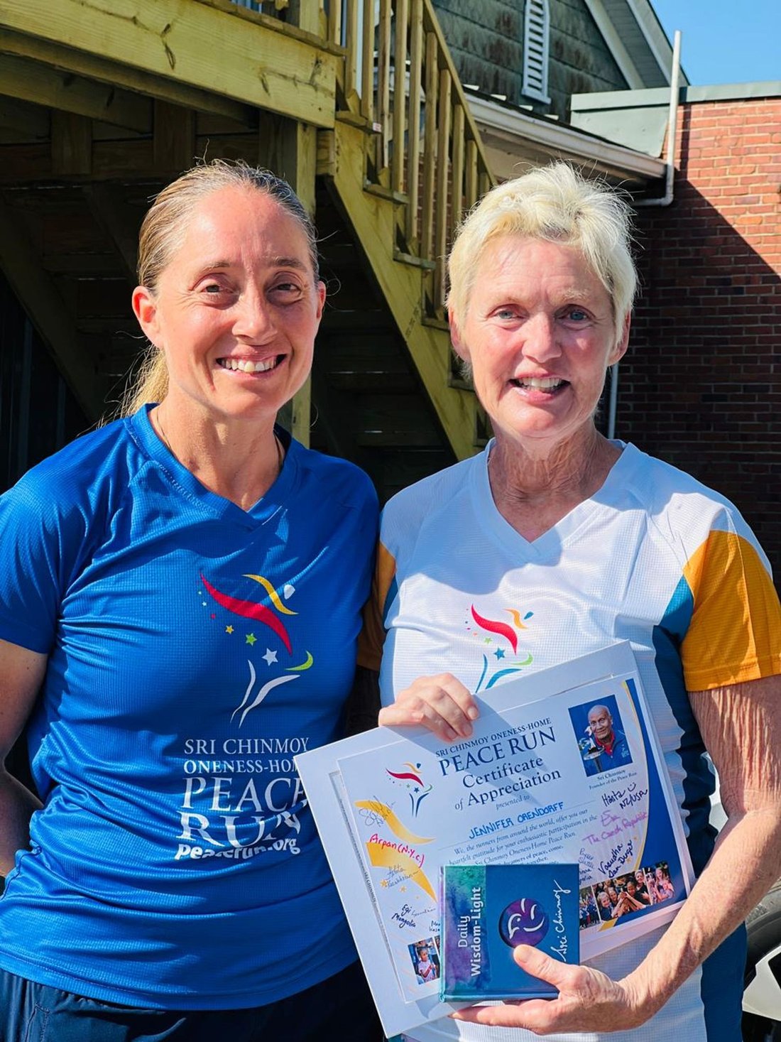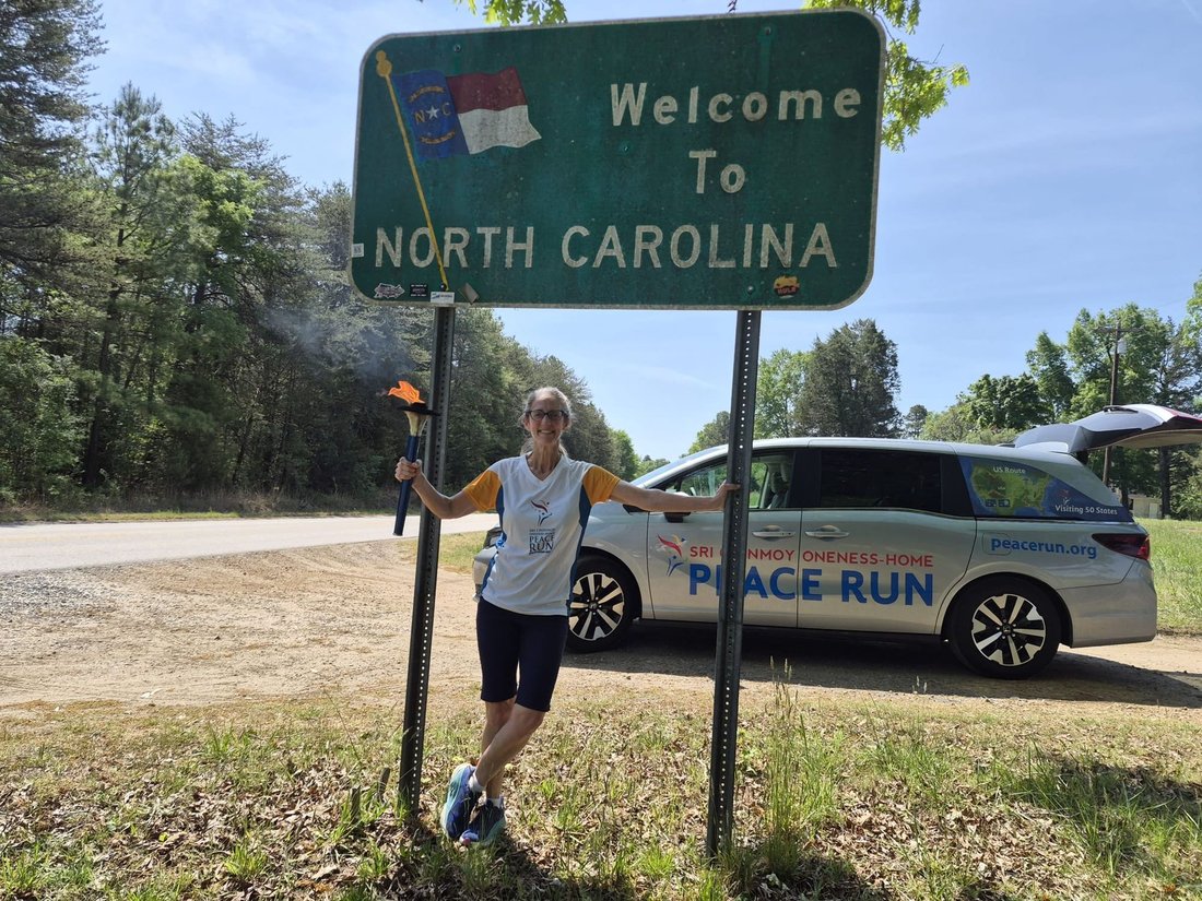 Along the way, we enjoyed a surprise welcome from State Senator Tammy Mulchi who lives along the route. She came out to greet the team and offer a message/prayer for peace.