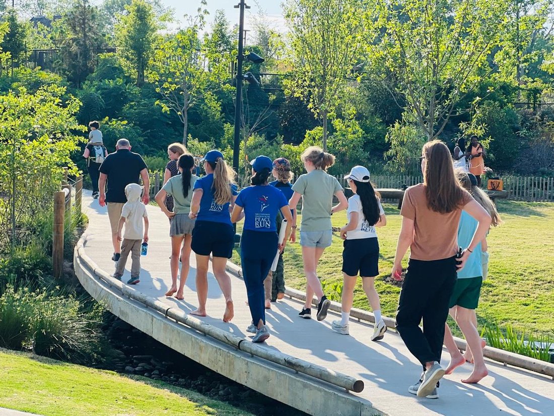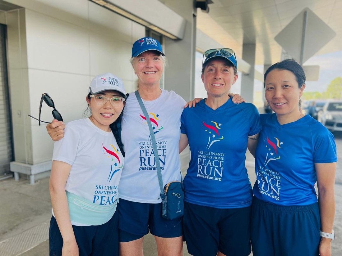 We are off to the start of our running day on Peace Run, joined by our new teammate Jennifer, she will run the first miles!