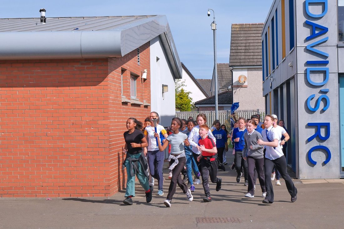 We have made several visits to St David's RC Primary school with the Peace Run and always receive an enthusiastic welcome.